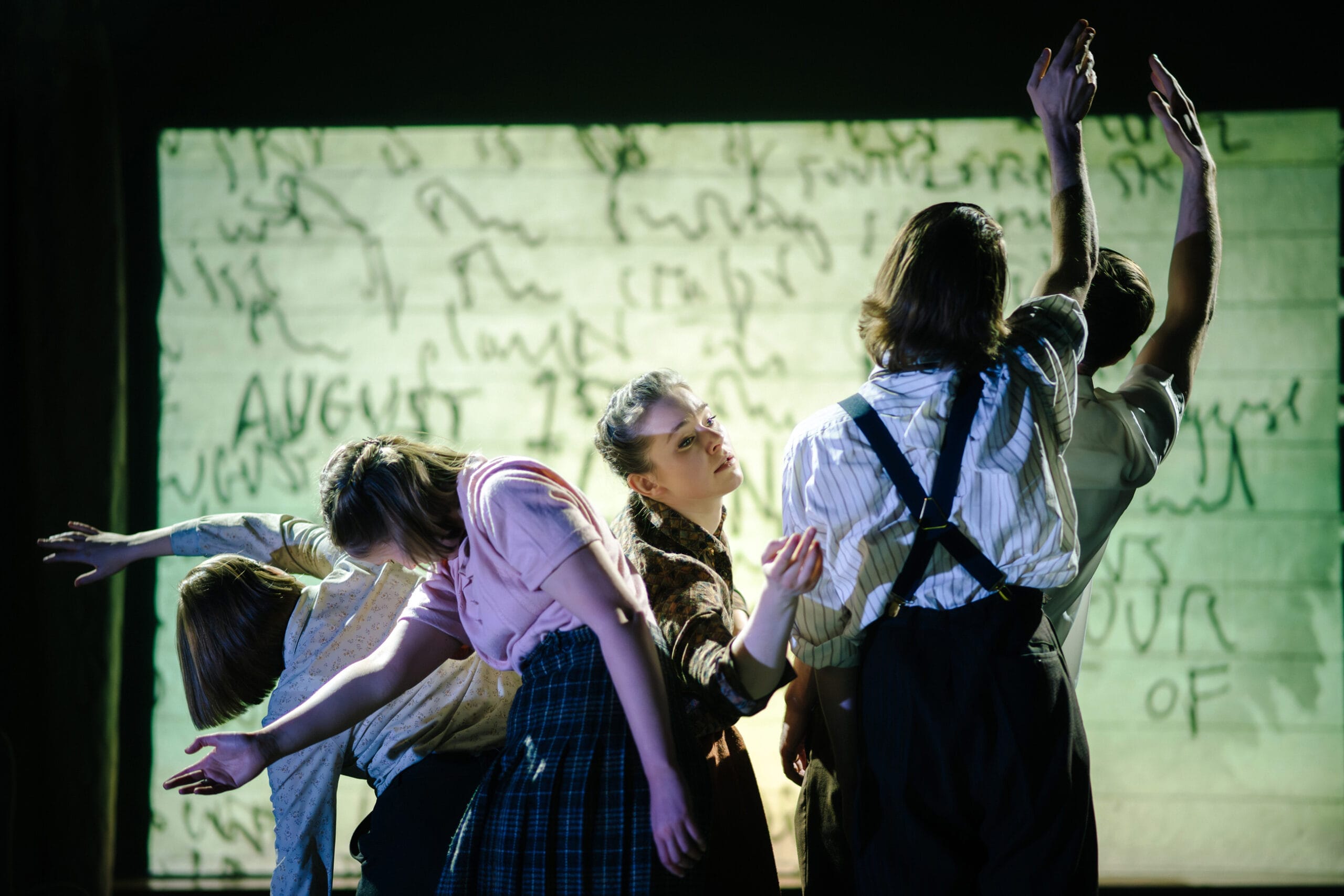 Vicki Manderson and Finn den Hertog’s claustrophobic staging combines with Lewis den Hertog’s visuals and the near wordless interplay of five actor-dancers to create a thrilling exploration of the crisis that follows the shattering of belief.